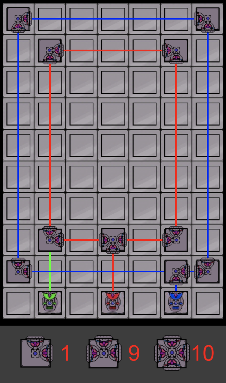 Above you can see all the sprites that are now a part of the game. Below, you’ll see what a level might look like with these sprites. Something else you might have noticed: The UI at the bottom panel now makes sense. No more of those unintuitive white boxes. Each manipulator has a corresponding number for the available amount left.