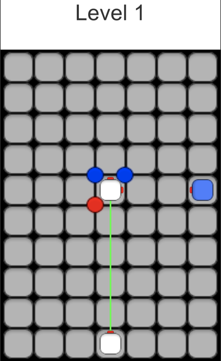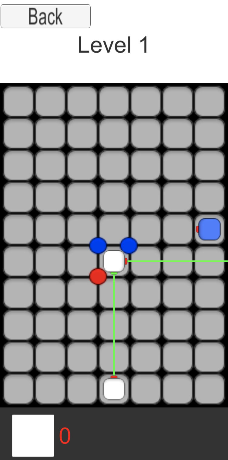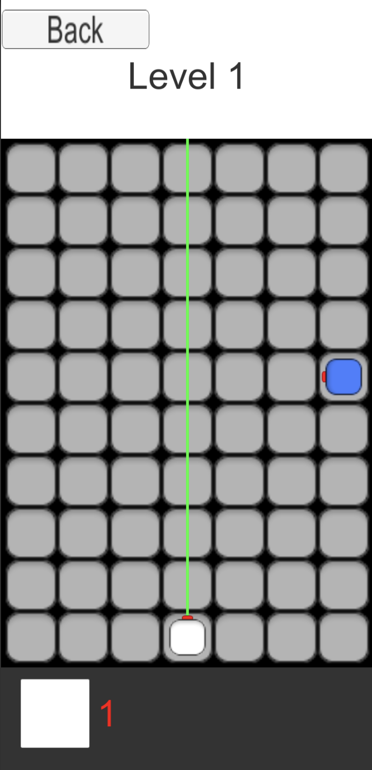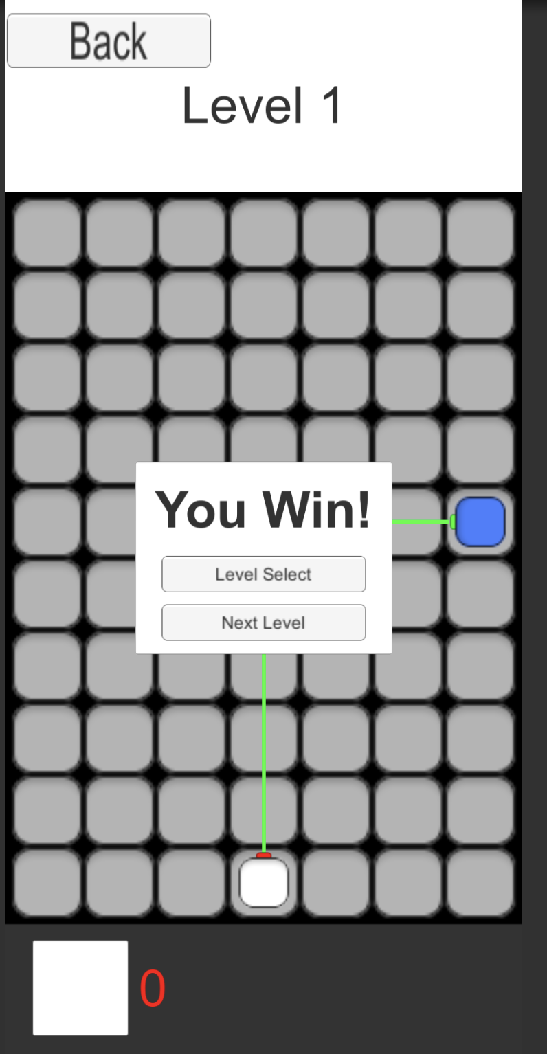On the Programming side, I made a lot of progress with a bunch of behind-the-scenes systems. We developed a system allowing us to create and store levels on a much more scale. The Board Manager now instantiates levels according a json file that stores all info necessary for a level. As far as UI goes, we updated 3 things. Although not shown below, you are able to reposition manipulators that you have already placed in the scene, so you don’t have to delete and drag back in. The sprites aren’t quite there yet, but you’ll notice at the bottom next to the white square is a number representing how many of that manipulator you have left. It increments and decrements accordingly. Finally, we have a win condition and a rather bland Win UI.